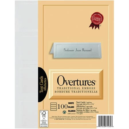 Pour imprimantes à jet d’encre et laser. Paquet de 50 feuilles. 2 cartons par feuille. 8-1/2 x 2-3/4″ pliés. Contenu recyclé : 50 %, postconsommation : 50 %.