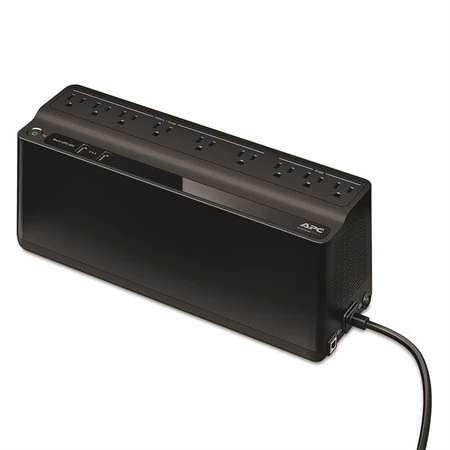 Alimentation de batterie de secours 850 VA / 450 W. 9 sorties (NEMA 5-15R) : 6 batteries de secours UPS avec prises de protection contre les surtensions, et 3 prises de protection contre les surtensions. Deux ports de charge USB (2,4 A partagĂ©). Cordon d’alimentation de 1,5 m, prise murale Ă 3 broches Ă angle droit (NEMA 5-15P), montage mural, plus un logiciel de gestion de l’alimentation PC Windows gratuit (Mac OS utilise des paramètres d’Ă©conomie d’Ă©nergie). DurĂ©e de vie de 3 Ă 5 ans. Autotest automatique pour une dĂ©tection prĂ©coce de la nĂ©cessitĂ© de remplacer une batterie. Notification de dĂ©faillance de batterie offre une fonction d’analyse des pannes de batteries avec alerte prĂ©coce. Comprends : 2 ports de chargement USB, câble USB, manuel d’utilisation. Noir. Certifications et standards: California (CEC) Battery Charger, CSA C22.2 NO. 107.3, cTUVus, FCC Part 15 Class B, UL 1778. Batterie de rechange APC UPS vendue sĂ©parĂ©ment. 12,87 x 5,47 x 4,13 po. 120V. Vendu Ă l’unitĂ©. Noir.