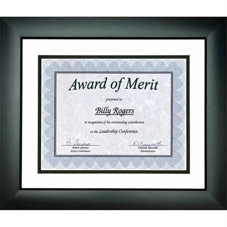 Pour document de format 8-1/2 x 11″. S »installe en format portrait ou paysage. Passe-partout double blanc avec petite bordure noire. 16-3/4 x 14-1/4″. Noir.