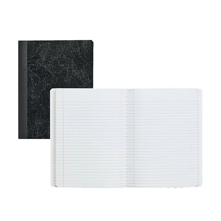 200 pages lignĂ©es. Couverture souple noire. Papier 15 lb. Marge de 3/4″. 7-1/2 x 9-3/4″.