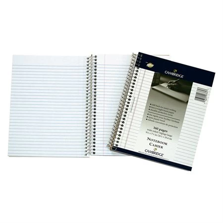 160 pages (80 feuilles) lignées large. Réglage large. Reliure spirale. Dos rigide pour faciliter l’écriture. 9-1/2 x 7-1/4 po.