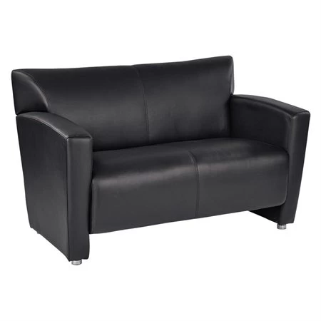Idéal pour les bureaux privés et salles de réception. Coussins fixes. Hauteur du siège à 18-1/4″. Siège de 41-1/2 x 20-1/2″. Dossier de 50 x 13-3/4″. Pattes fini argent. Similicuir. Noir.