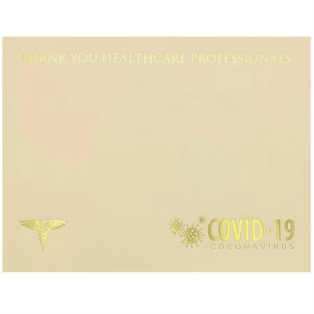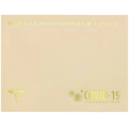 Pour remercier les professionnels de la santé. Logo Covid-19 au bas de la page. Doré. Cadre non inclus. Paquet de 25