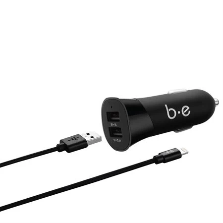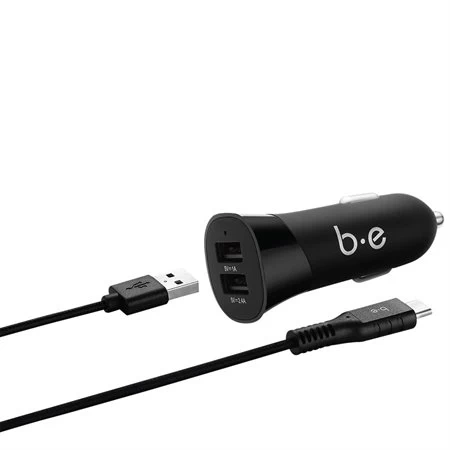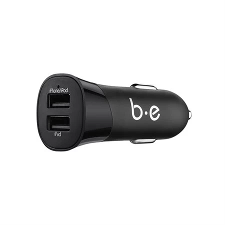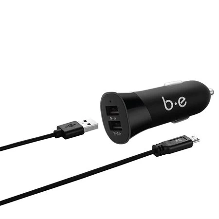 Notre chargeur de voiture à double port USB de 3,4 A permet de charger deux appareils simultanément. Vous pouvez maintenant charger en même temps votre téléphone intelligent en utilisant le port de 1 A et votre tablette en utilisant le port de 2,4 A, avec une vitesse de chargement maximale totale de 3,4 A. Corps caoutchouté. Vendu à l’unité. Noir.