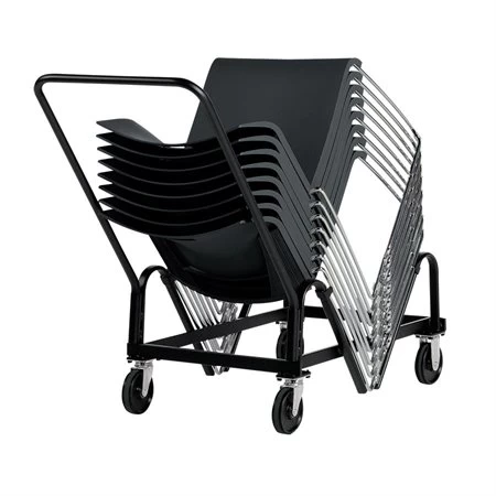 Patins non marquants. Un système de jonction permet aux chaises d’être verrouillées sans effort les unes aux autres et disposées en rangées nettes. Peuvent être rangées et empilées jusqu’à 40 de haut sur un chariot optionnel. Garantie à vie.