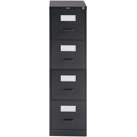Poignées conventionnelles, avec loquet de sécurité. Côtés pleine hauteur, servant de supports pour dossiers suspendus. Plaque de compression mobile. Serrure. Largeur de 15”. Profondeur de 26-9/16”.