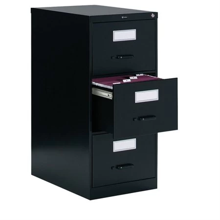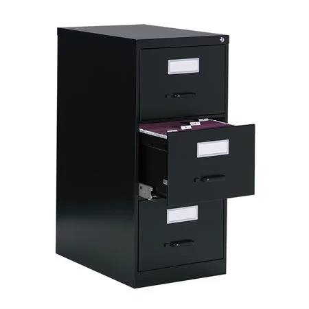 Profondeur de 26 po. Poignées conventionnelles, avec loquet de sécurité. Côtés pleine hauteur, servant de supports pour dossiers suspendus. Plaque de compression mobile. Serrure.