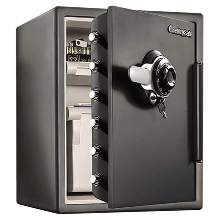 Serrure double à combinaison et clé. Classeur polyvalent et tiroirs pour les documents importants. Pochette de porte, support à clés et compartiments pour les petits objets. 6 gros boulons de 1 po. 60 % plus grand que les coffres-forts traditionnels. Classé UL 1 heure à 1700°F/927°C pour la résistance au feu. Vérifié ETL pour résister à une chute de 15 pi. / 4,5 m. Vérifié ETL pour 1 heure de protection à 1700°F/927°C pour les médias numériques. Vérifié ETL pour 24 heures de protection pendant 24 heures en immersion à 8 po. de profondeur. Peut être boulonné au plancher (quincaillerie incluse). 18,6 x 19,3 x 23,8 po. H.