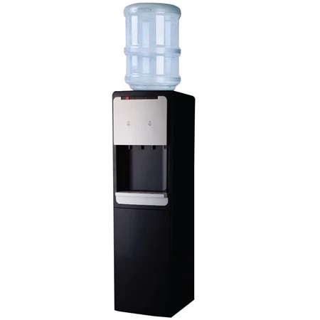 Distributeur d’eau chaud et froid à chargement par le haut. Fournit une capacité d’eau chaude de 5 litres et une capacité d’eau froide de 1 litre. Rangement inférieure avec étagère réglable.. Plateau d’égouttement amovible. 12-1/2 x 13-3/8 x 39-1/4 po. Vendu à l’unité. Noir.
