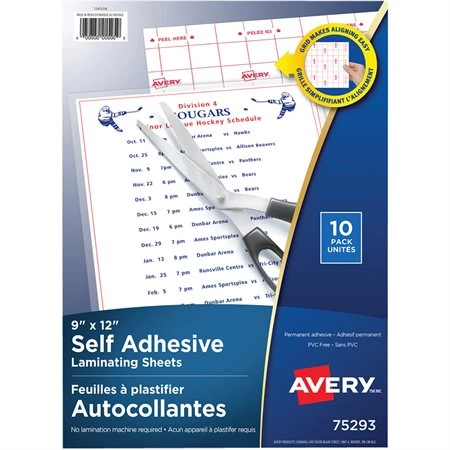 9 x 12 po, pour document format lettre. Aucun appareil à plastifier requis. Adhésif permanent. Sans PVC.