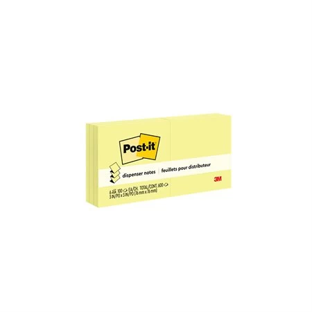 3 x 3 po. Bloc de 100 feuillets. Paquet de 6.