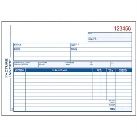 Les duplicatas sans carbone vous permettent de garder une trace de vos dossiers personnels. Pages numérotées. Bilingue. Parfait pour demander des paiements détaillant le prix, les taxes et plus encore. 3 parties. 50 feuilles par livret. Certifié SFI. 5,56 x 8,43 po.
