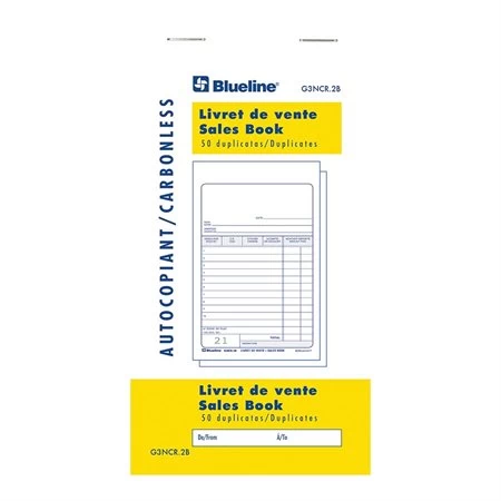 Factures numérotées. Livret de 50. 3-1/2 x 6-1/2”. Autocopiant. 2 copies.