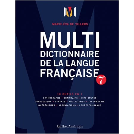 7e Édition. Ce dictionnaire intègre dans un seul ordre alphabétique tous les renseignements utiles sur l’orthographe, la grammaire, la syntaxe, la typographie, les difficultés, les conjugaisons, les québécismes, les interférences entre le français et l’anglais, la correspondance. L’ouvrage contient aussi plus de 100 tableaux et 76 modèles de conjugaison.