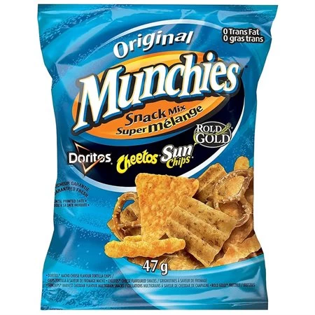 Comprend des croustilles cheddar de campagne de Sun Chips, des bâtonnets au fromage de Cheetos Crunchy, des croustilles au fromage Nacho de Doritos et des petits bretzels Tiny Twists de Rold Gold Classic. 47 g. Boîte de 40.