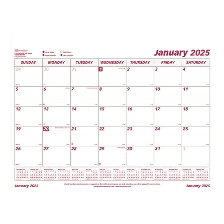 Feuilles mobiles avec support de vinyle renforcé. Support de carton renforcé. Un mois par feuille avec un bloc ligné par jour. Calendrier annuel au bas de chaque page. Anglais.