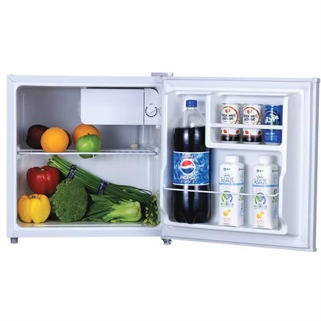 1,6 pi. cu. Porte réversible, dos affleurant et pieds de mise à niveau pour un ajustement facile dans les zones étroites. La commande à cadran complet thermo vous permet de régler facilement la température. Comprend une section de refroidisseur, une extension de tablette métallique, un porte-bouteilles et plus encore. 1 an de garantie. Blanc.
