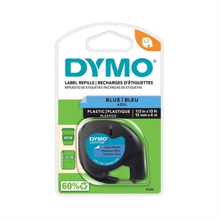 Étiquetez presque tout, n’importe où au bureau ou à l’extérieur. Étiquettes fendues à l’arrière faciles à décoller pour une application rapide et facile. Conception de cassette à changement rapide. À utiliser avec les étiqueteuses DYMO LetraTag, vendues séparément. Les étiquettes en plastique sont essuyables et résistantes aux déchirures. Pour étiqueter le tissu, utilisez notre ruban adhésif thermocollant. 1 rouleau/boîte. 12mm x 4m.