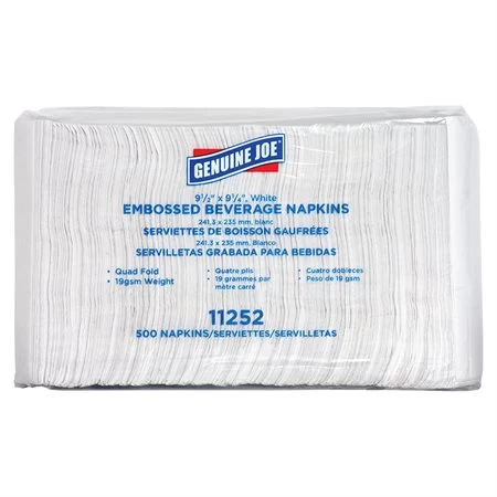Les serviettes carrées sont pliées en quatre et perforées pour une absorption maximale. 1 pli. Paquet de 500. Blanc.
