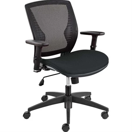 Dossier en tissu maillé noir avec assise rembourrée. Commande de réglage de l’inclinaison de l’assise. Les caractéristiques comprennent le réglage de la tension, le blocage du basculement, l’assise à rebord semi-arrondi, les coussins profilés. Hauteur de l’assise réglable. Hauteur des accoudoirs réglable. Garantie à vie limitée. Dimensions : 25 x 23-1/2 x 35-1/2 po H. Certifié par Greenguard.