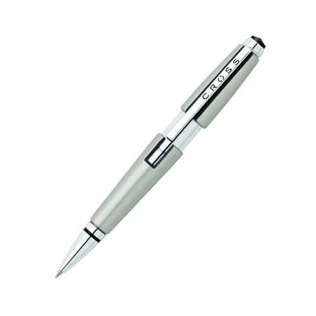 Stylo sans capuchon. Encre gel disponible en violet, rouge, bleu ou noir. Devient stylo à bille en changeant de recharge. Technologie innovante d’ouverture par glissière pour une utilisation à une seule main. Enveloppé dans une élégante résine de fusion métallique. Garantie à vie.