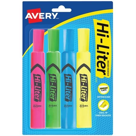 Pour papier régulier. Pointe biseautée. Sans PVC. Couleurs fluo.