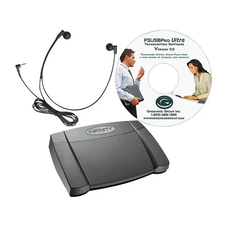 Inclus tout ce vous avez besoin pour la transcription. PĂ©dale USB Ă 3 boutons avec fonctions programmables par l’utilisateur, le logicel de transcription digitale. Inclus le retour automatique, l’avancement rapide et le retour en arière.. Vous permet d’indiquer dans un fichier jusqu’a 16 signets pour accès immĂ©diat ou notation spĂ©ciale. le logiciel est compatible avec la wav. DSS, MP3.. a vous de choisir ! Fera la transcription de Phillips, Olympus, Dictaphone et Sanyo . Comprend une pĂ©dale, un logiciel et un casque. Garantie limitĂ©e d’un an.