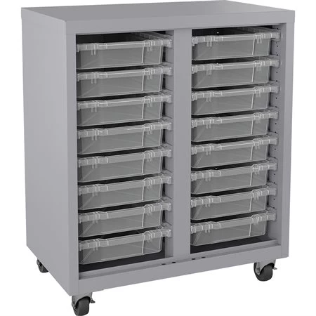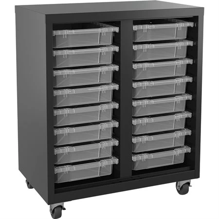 Fabriqué en acier durable et robuste. Comprends 16 bacs transparents. Chaque bac mesure 3 po. H. Sur roulettes. Contient 28% de contenu recyclé. Couvert par la garantie à vie limitée de Lorell.